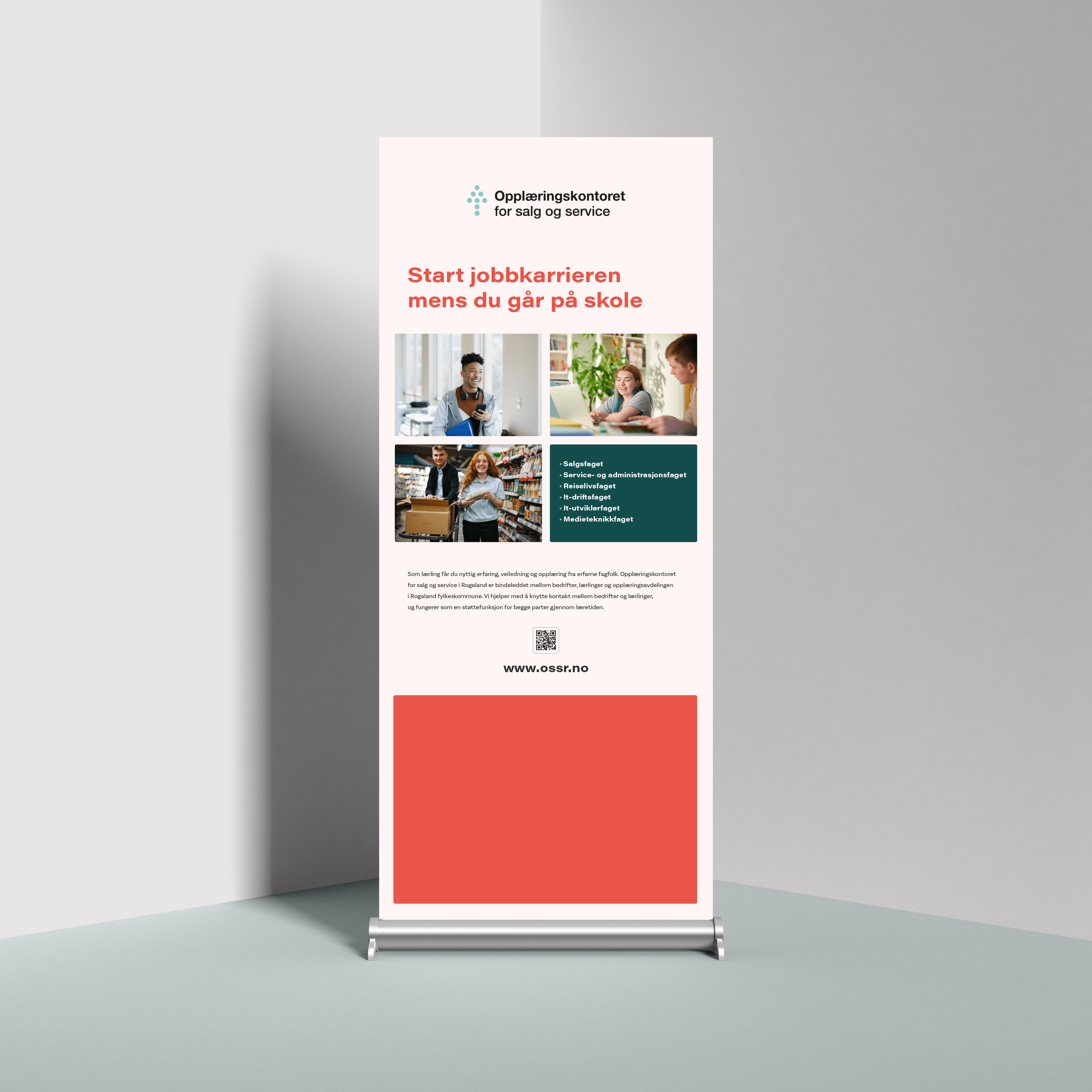 Opplæringskontoret for salg og service i Rogaland (OSSR) trengte en oppdatering av deres nettside og visuelle profil. De ønsket en ny nettside som var både brukervennlig og informativ for deres målgruppe. I tillegg har vi laget en skreddersydd integrasjon mot deres system for ledige stillinger.